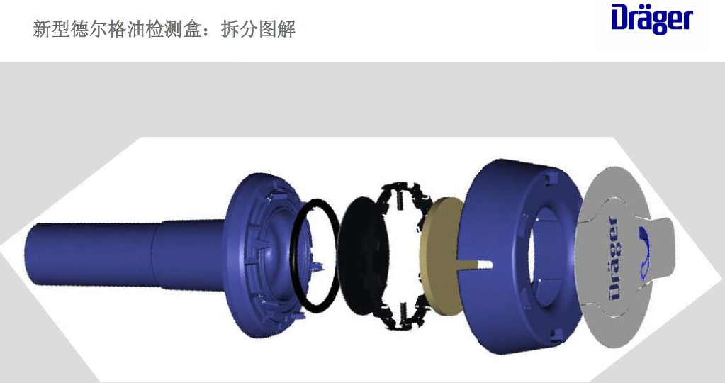 只能使用德?tīng)柛裨b配件連接至氣源壓力管線。5分鐘測(cè)量完成之后揭開(kāi)油檢測(cè)盒表層的保護(hù)膜,應(yīng)確保徹底將油檢測(cè)盒推入油盒適配器8103557里面并檢查是否正確安裝。